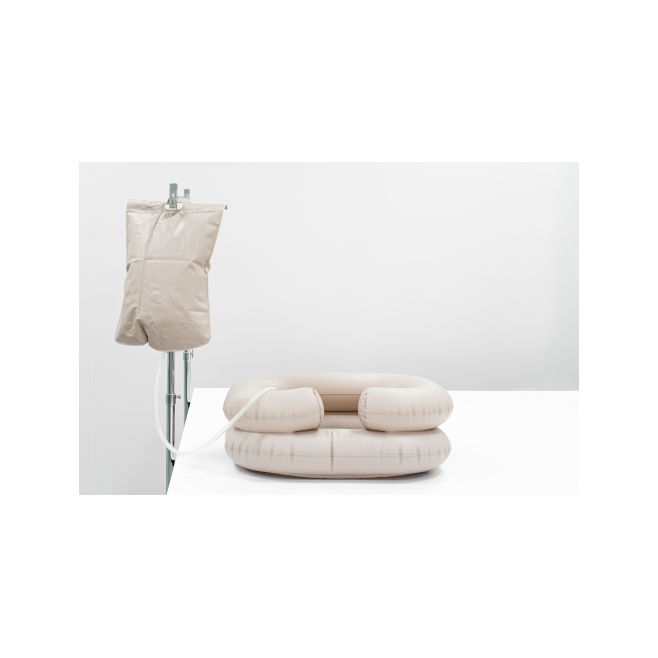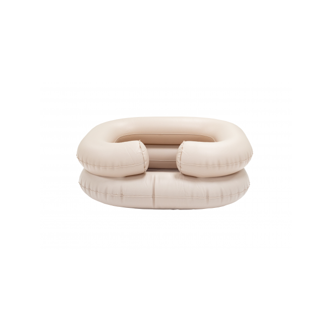 Zestaw obejmuje przenośny nadmuchiwany basen do mycia głowy z otworem odprowadzającym wodę wykonany z PCV.