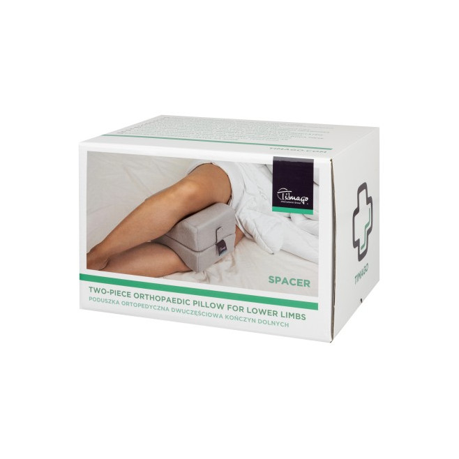 Poduszka ortopedyczna dwuczęściowa kończyn dolnych SPACER stosowana jest przy stanach bólowych stawów kolanowych oraz po endoplastyce stawów biodrowych.