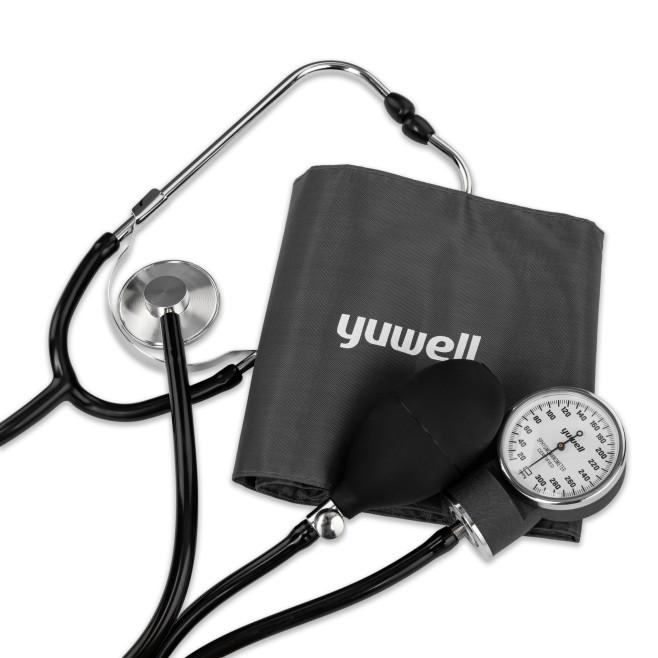 Ciśnieniomierz mechaniczny zegarowy ze stetoskopem Yuwell to sprzęt pomocniczy przeznaczony do pomiaru ciśnienia na ramieniu.