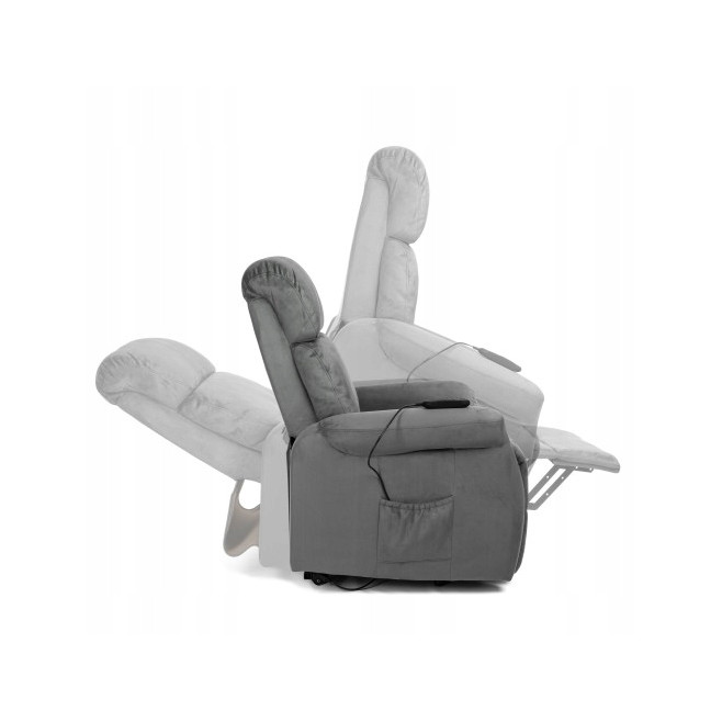 regulowany, zapewniający wygodny wypoczynek osobom chorym, w zaawansowanym wieku oraz stale przebywających we własnym mieszkaniu. Fotel wyposażony jest w podwójny, niezależny napęd, który zapewnia maksymalny komfort użytkownika, dzięki wielu możliwościom wyboru ustawień. Przeznaczony do użytku wewnątrz pomieszczeń.