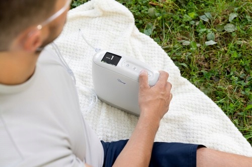 Dzięki cichej pracy, niskiej wadze i małym wymiarom pomaga w utrzymaniu aktywnego stylu życia. Pulsacyjny przepływ umożliwia efektywną pracę w 4 trybach. Torba dołączona do zestawu umożliwia przenoszenie urządzenia. Kolorowy wyświetlacz ułatwia obsługę, a o bezpieczeństwo dba system alarmowy urządzenia.