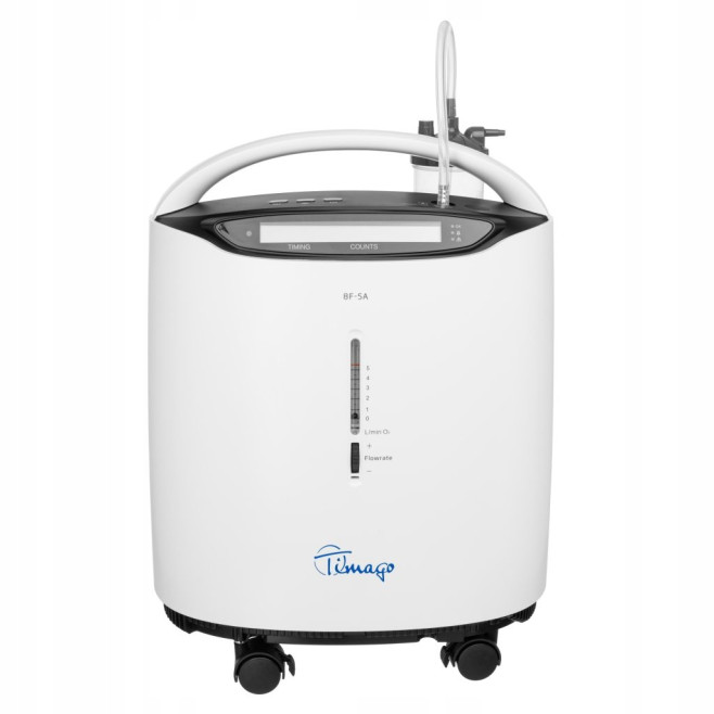 Model 8F-5AW jest wyjątkowo prosty w obsłudze – intuicyjny panel z wyświetlaczem LED pozwala regulować czas pracy i przepływ tlenu, a ergonomiczna obudowa z kółkami ułatwia przemieszczanie. Wbudowany uchwyt i kompaktowy rozmiar czynią go idealnym do stosowania zarówno w domu, jak i gabinecie medycznym. Koncentrator tlenu z nebulizatorem oferuje dodatkową funkcję inhalacji, co czyni go wszechstronnym urządzeniem terapeutycznym.
