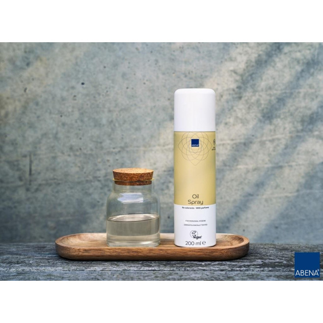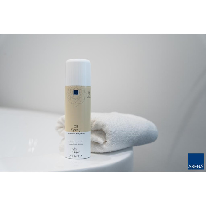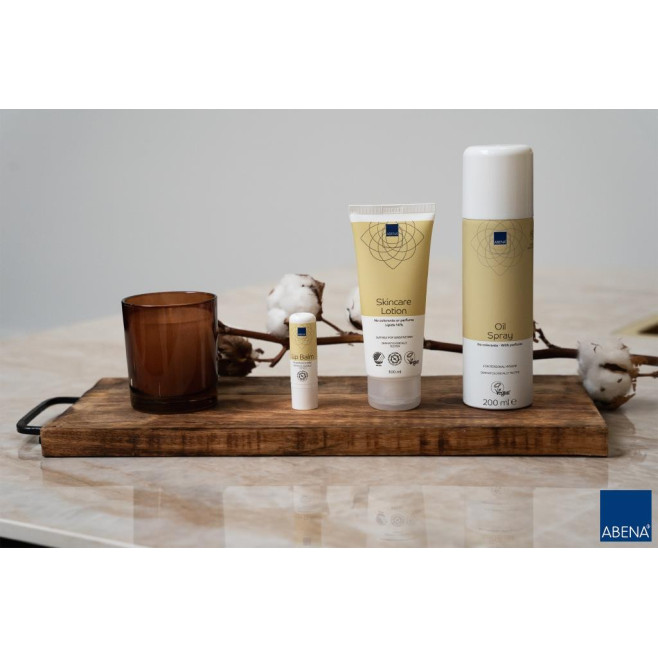 Oliwka w sprayu firmy ABENA jest odpowiednia do pielęgnacji zarówno skóry normalnej, jak i suchej, z widocznymi pęknięciami.
