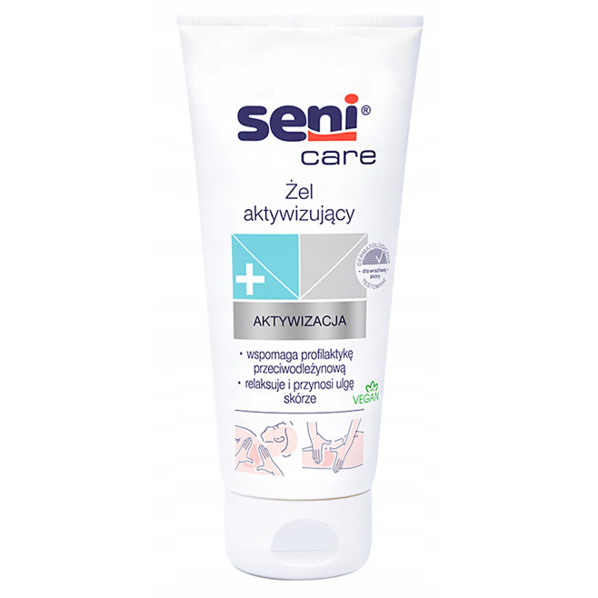Żel aktywizujący Seni Care to specjalistyczny preparat pielęgnacyjny, który pobudza krążenie, odświeża i poprawia kondycję skóry. Dzięki zawartości kofeiny, guarany i składników chłodzących żel zapewnia uczucie ulgi, zmniejsza napięcie mięśni oraz wspiera procesy regeneracyjne skóry.