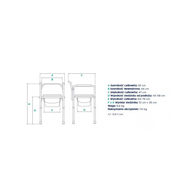 Krzesło zostało wyposażone w wyjmowany pojemnik sanitarny dzięki któremu z łatwością utrzymamy go w czystości.