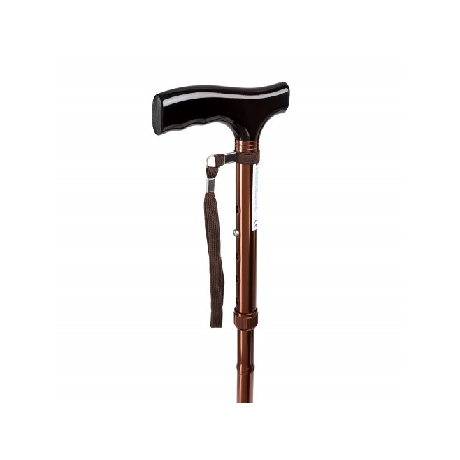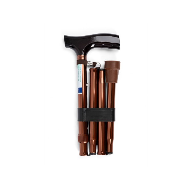 Elegancka laska składana wykonana z wysokiej jakości lakierowanego drewna oraz stopu aluminium, regulowana wysokość od 78 cm do 88 cm. Laska składana z czterech części mocowanych ze sobą na elastycznej gumie, dzięki czemu nie ma możliwości zgubienia żadnego ze składów.