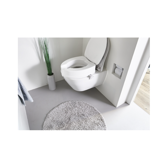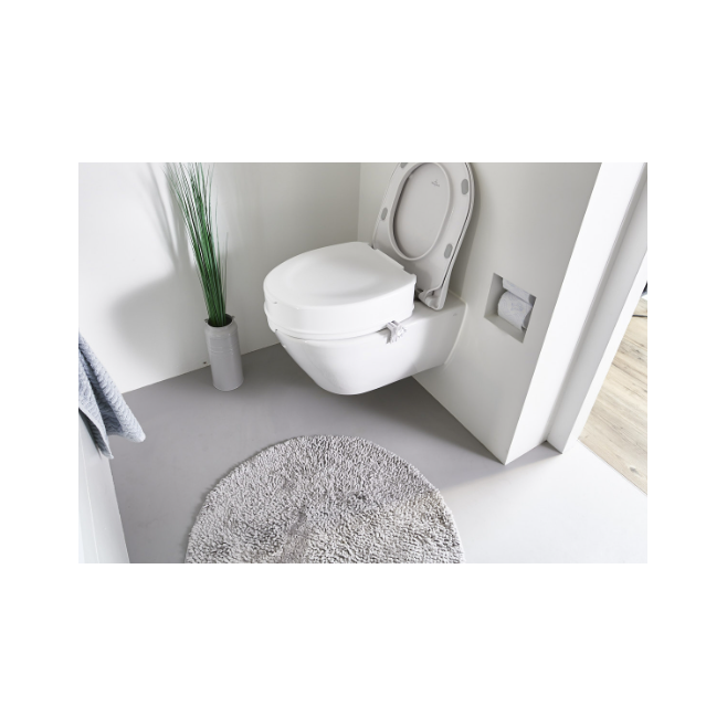 Nakładka sedesowa podwyższająca pomaga użytkownikowi podczas korzystania z toalety.
