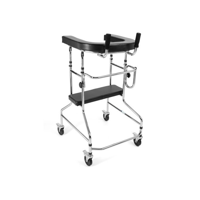 ANNA - podpórka z podłokietnikami typu ambona ułatwiająca chodzenie - jest sprzętem pomocniczym przeznaczonym dla osób o obniżonej sprawności ruchowej, które potrzebują stabilnego podparcia i asekuracji podczas pionizacji oraz chodzenia.