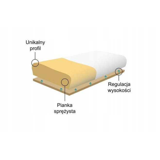 ✔️ Poduszka posiada regulację wysokości, dzięki czemu można spać na niej zarówno na plecach, jak i na boku, a także na indywidualne dopasowanie jej do budowy ciała