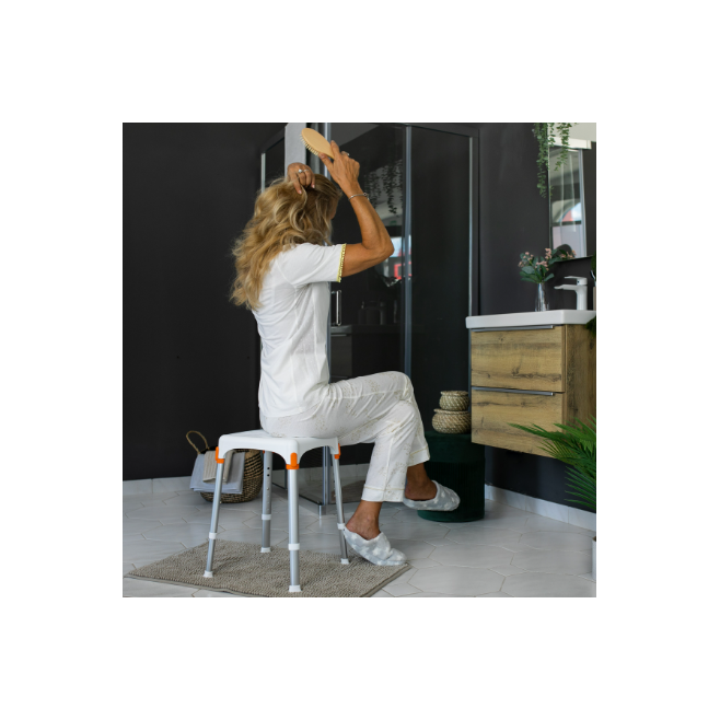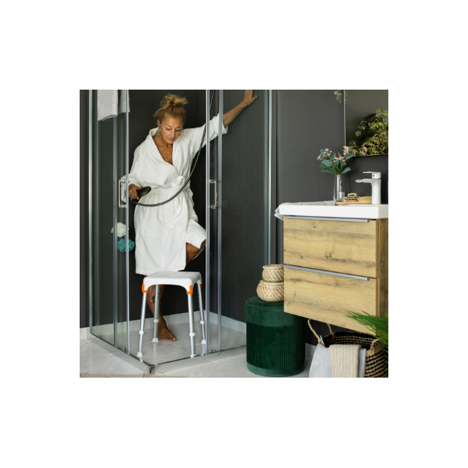 Taboret polecany jest do stosowania pod prysznicem, w wannie, łazience i innych wilgotnych pomieszczeniach.